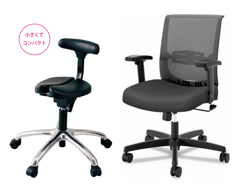 一般的なワークチェアーに比べ、とてもコンパクト。オフィスでもご自宅でも、省スペースで邪魔になりません。