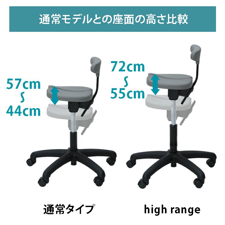 他の画像を見る キャスタータイプ アーユル・チェアー オクトパス ( high range ) ¥ 72,600 税込 ※送料無料/一週間前後のお届け 脚 : キャスター5本脚 座面高さ : 51cm~69cm(調節可) ※オクトパス(通常モデル)とは座面の高さが異なりますのでご注意ください。 カートに入れる お気に入りに登録する