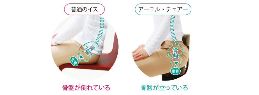 アーユル・チェアーは「骨盤が立つ感覚」が今までのイスとは明らかに違うことを実感します。