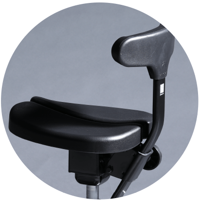 特許取得の特殊な座面をまたいで座ると、自然と「坐骨」で座る姿勢に。骨盤が立ち、腰への負担を大幅に軽減します。長時間座って作業することが多いクリエイターの身体を快適にサポートします。
